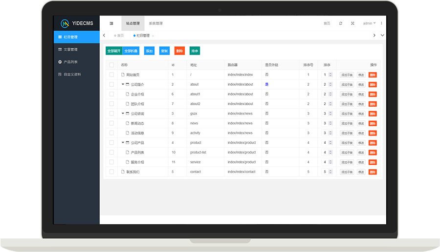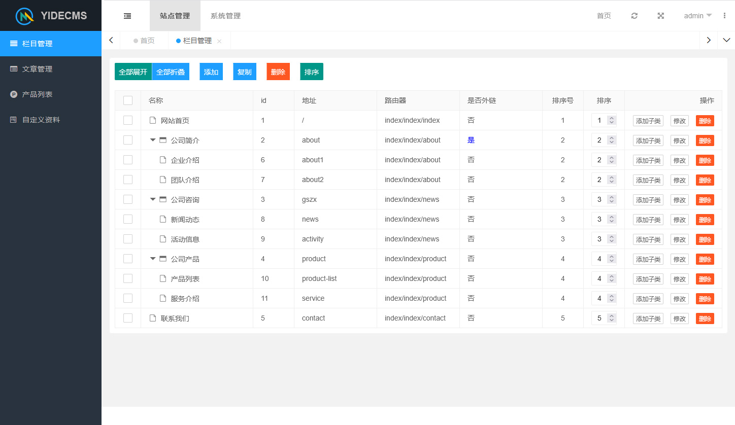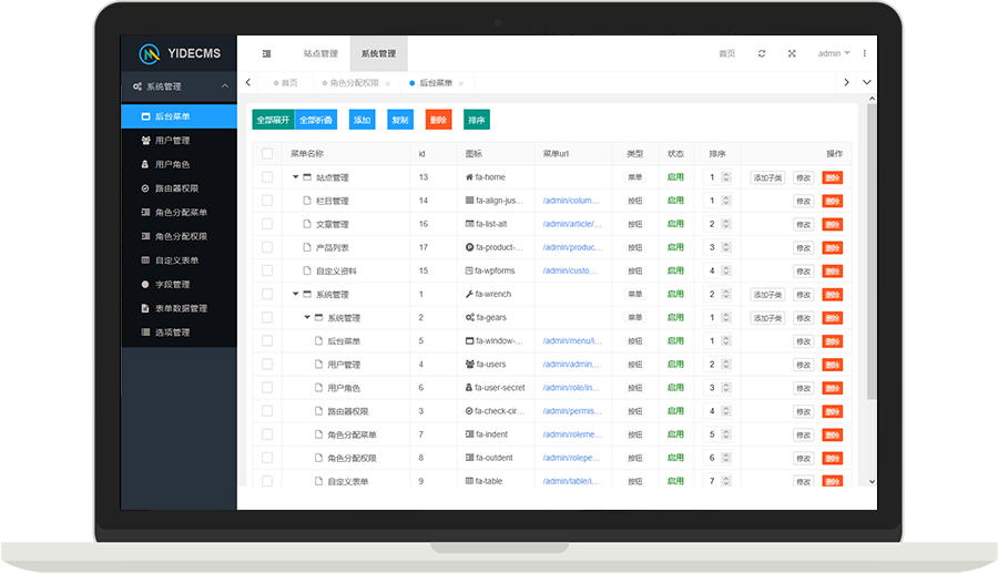 yidecms参考织梦等cms打造一个简单易操作的后台